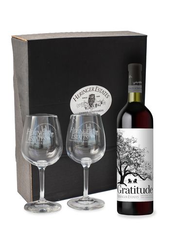 Show your Gratitude this holiday season. Nothing says "I'm grateful for you" like a bottle of our Artisan Series "Gratitude" red blend, complete with two Heringer Estates wine glasses.